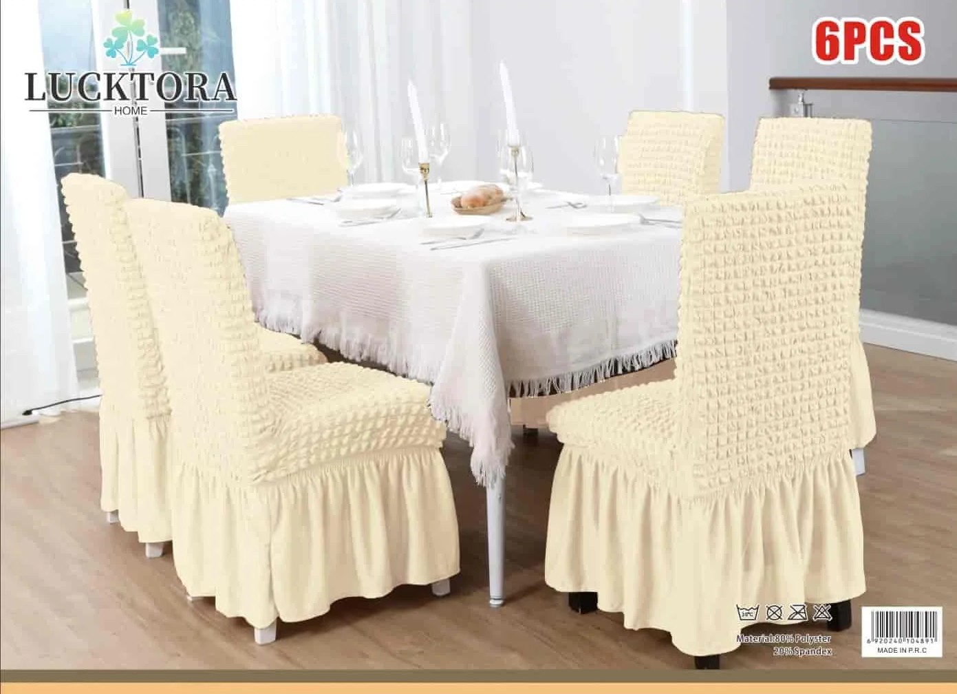Σετ 6τμχ Ελαστικά Καλύμματα Καρέκλας Με Βολάν. Ανανεώστε την τραπεζαρία σας με τα μοντέρνα και κομψά ελαστικά καλύμματα της που εφαρμόζουν σε όλα τα μεγέθη καρέκλας! Αποκτήστε τα σε όμορφα χρώματα που θα ταιριάξουν με κάθε τραπεζαρία και αλλάξτε την όψη της! Τα καλύμματα καλύπτουν όλη την καρέκλα, το ύφασμα είναι ελαστικό στο κάθισμα και στην πλάτη και σταθερό από το κάθισμα και κάτω. Εφαρμόζουν σχεδόν σε όλες τις καρέκλες , ακόμα και σε καρέκλες με στρογγυλή πλάτη (αχιβάδα). Ανανεώστε τις καρέκλες της τραπεζαρίας σας, προστατέψτε τις από λεκέδες, σκόνη, λαδιές και βρωμιές.