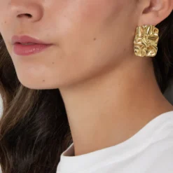 Ετικέτα: Σκουλαρίκια χρυσό ατσάλι τετράγωνο τσαλακωμένο
